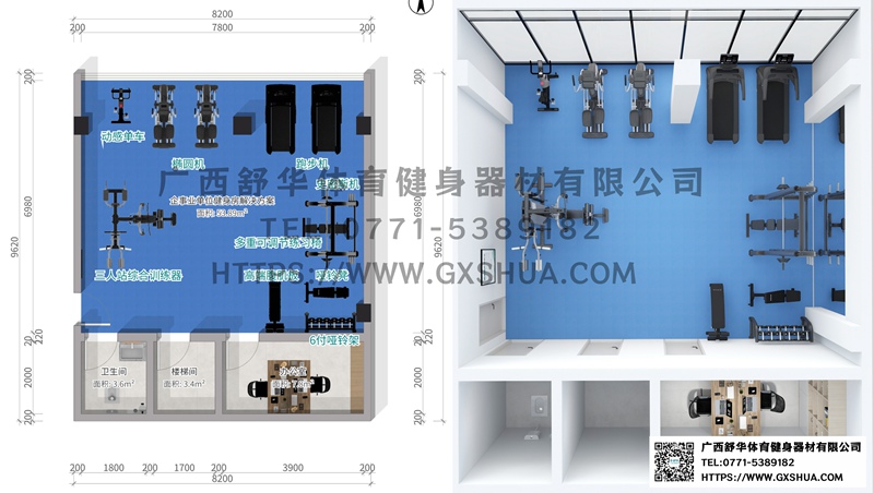企事业单位健身房就像一颗活力的种子,在单位内部生根发芽,为员工的健康生活注入动力,为单位的长远发展凝聚力量,成为构建积极向上企业文化不可或缺的重要部分。一个占地面积仅54平方米的健身房,虽空间有限,却能成为激发团队活力、提升工作效率的秘密武器,为员工提供一个便捷、全面的健康充电站。